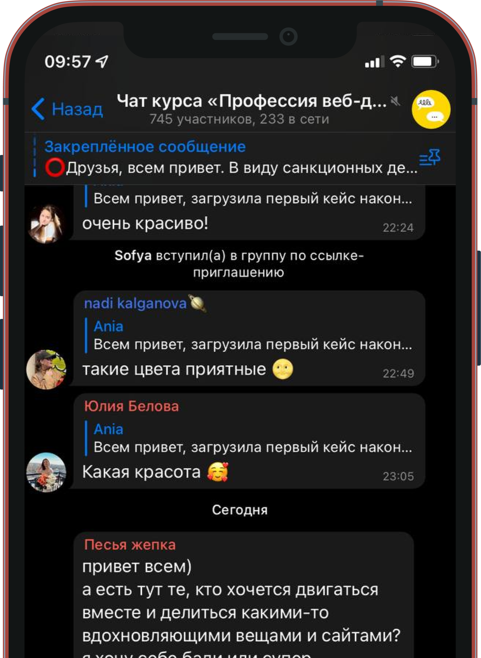 Вливайтесь в дизайнерское сообщество с первых дней обучения. В чатах студенты делятся своими работами и полезными ресурсами, а кураторы академии оперативно отвечают на любые вопросы.